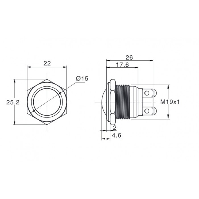 EJ19-231A 19mm Işıksız Bombe Kafa Yaylı Çelik Buton ıp67