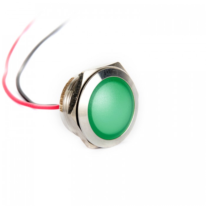 G19-170LT-GD 19mm Metal Sinyal Lambası 15cm Kablolu 6-24V Yeşil