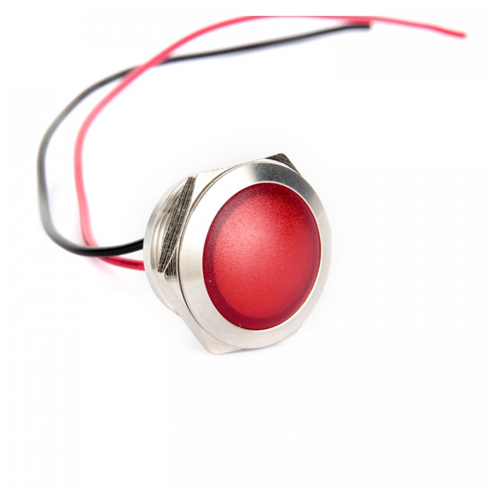19mm Delik Çapına Uyumlu Düz Kafa Metal Kırmızı LED Işıklı Sinyal Lambası