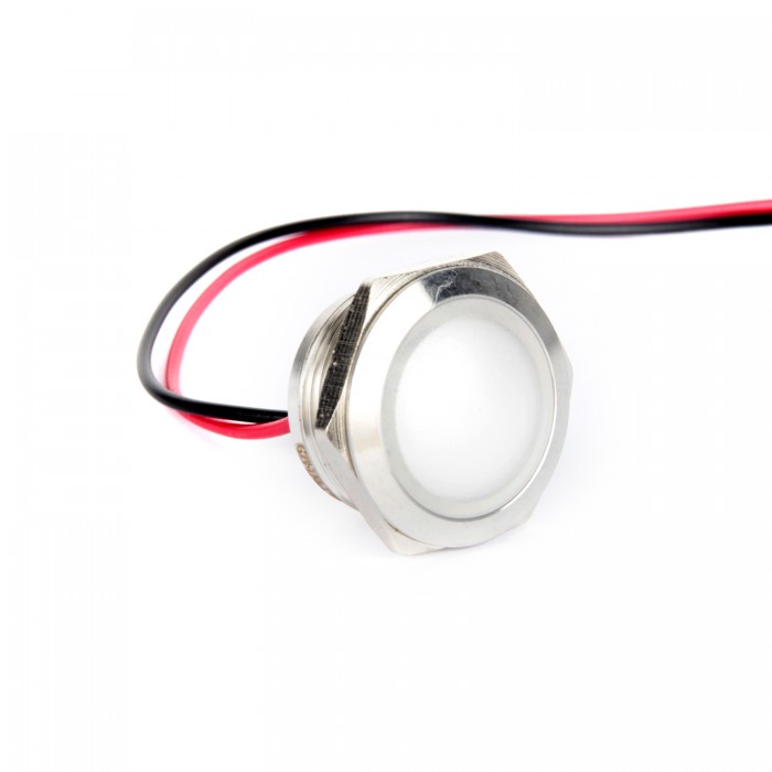 19mm Delik Çapına Uyumlu Düz Kafa Metal Beyaz LED Işıklı Sinyal Lambası