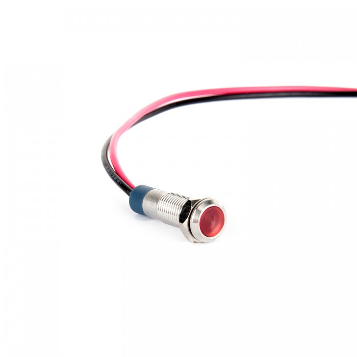 G6-130-15-RD 6mm Metal Sinyal Lambası 15cm Kablolu 6-24V Kırmızı