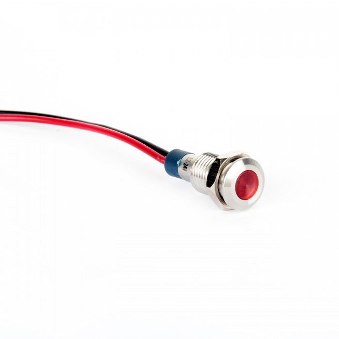 G8-130-15-RD 8mm Metal Sinyal Lambası 15cm Kablolu 6-24V Kırmızı