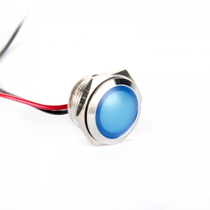 16mm Delik Çapına Uyumlu Düz Kafa Metal Mavi LED Işıklı Sinyal Lambası