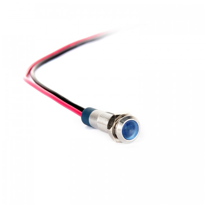 6mm Delik Çapına Uyumlu Düz Kafa Metal Mavi LED Işıklı Sinyal Lambası