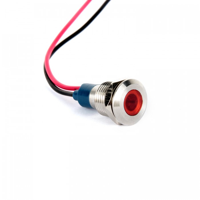 10mm Delik Çapına Uyumlu Düz Kafa Metal Kırmızı LED Işıklı Sinyal Lambası