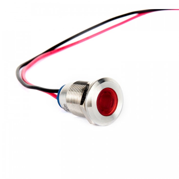 12mm Delik Çapına Uyumlu Düz Kafa Metal Kırmızı LED Işıklı Sinyal Lambası