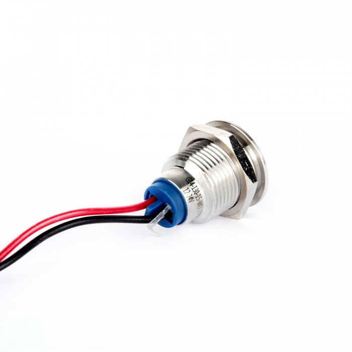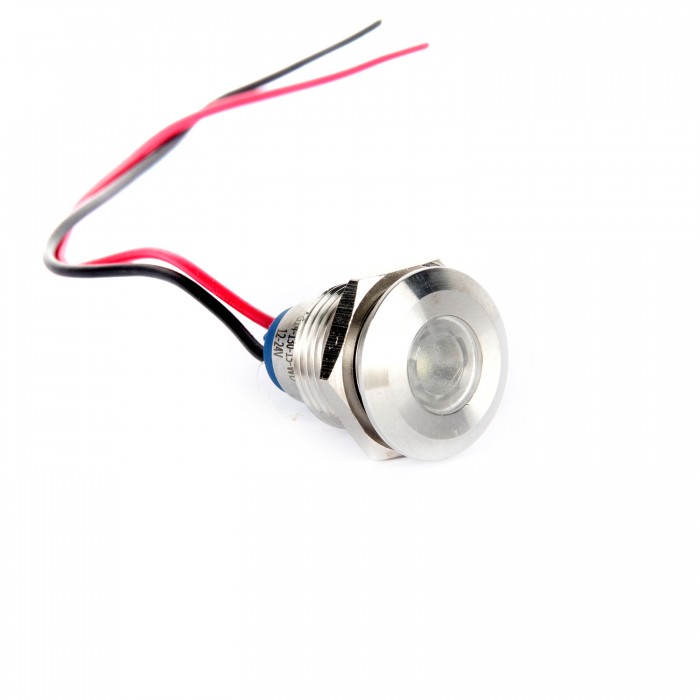 14mm Delik Çapına Uyumlu Düz Kafa Metal Beyaz LED Işıklı Sinyal Lambası