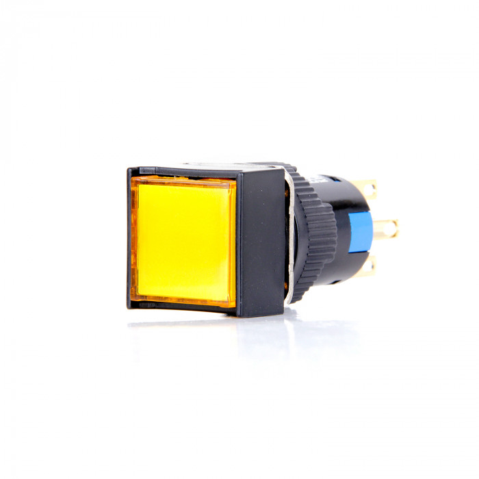16mm Delik Çapına Uyumlu Kare Sarı Işıklı Kalıcı Buton
