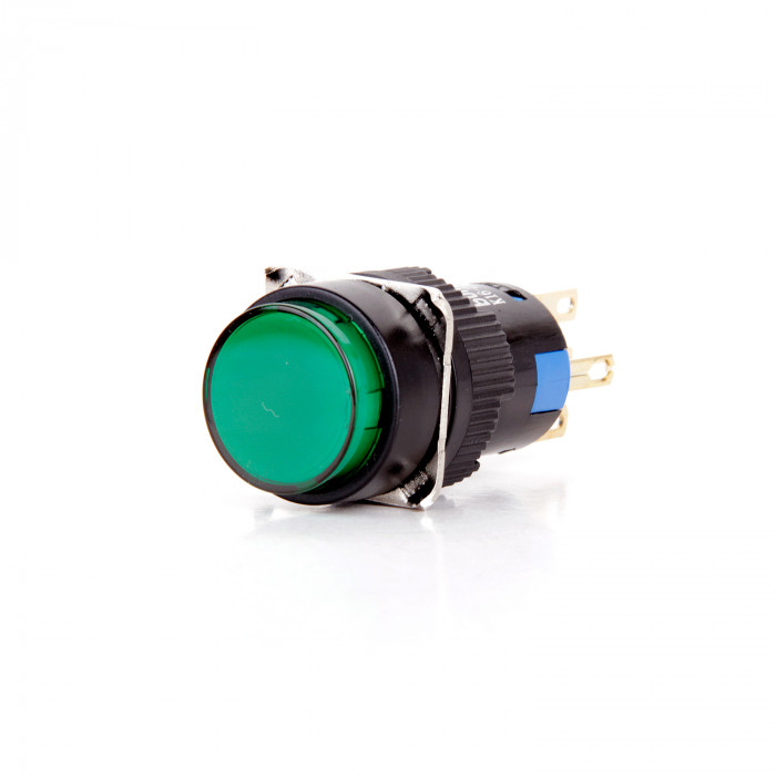 K16-372-GA2 16mm Yuvarlak Gövde Yeşil Işıklı Kalıcı Buton 220V
