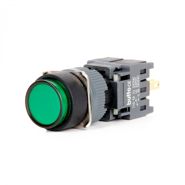 16mm Delik Çapına Uyumlu Yuvarlak Yeşil Işıklı Yaylı Buton