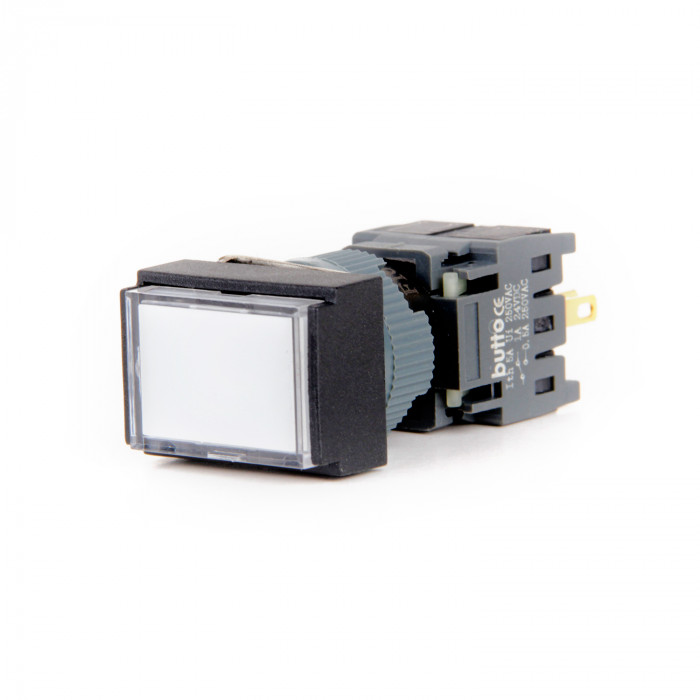 F16-291-WD 16mm Dikdörtgen Gövde Beyaz Işıklı Yaylı Buton 12-24V