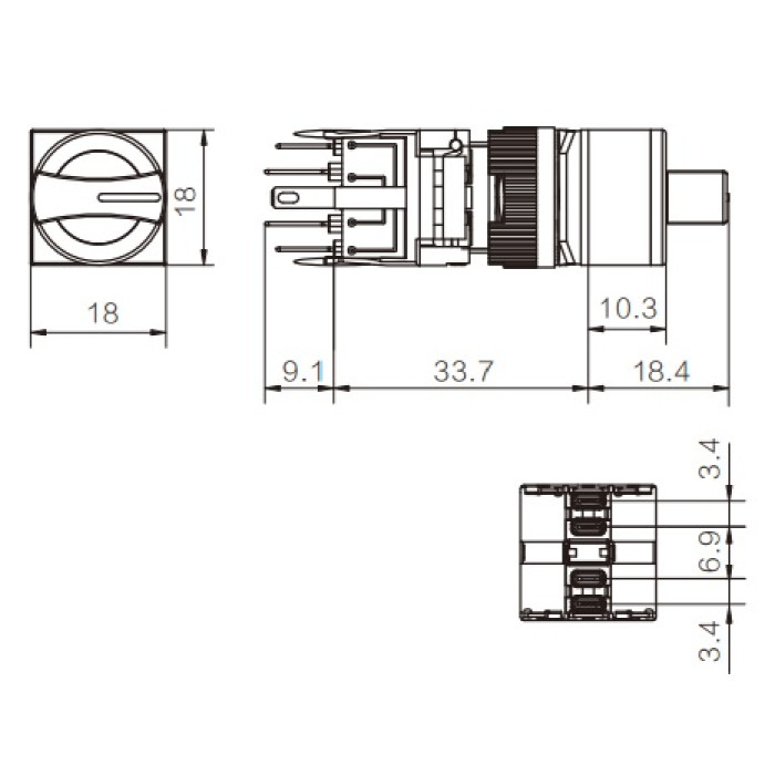 F16-522-3 16mm Kare Gövde 1-0-2 Kalıcı Mandal Buton