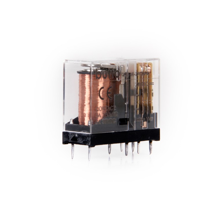 Etiketler: 14F-2P/024DC, çift kontak röle, butto röle, röle,