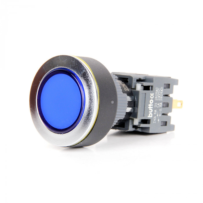 22M16-271-BD 16-22mm Yuvarlak Gövde Mavi Işıklı Yaylı Buton 24V