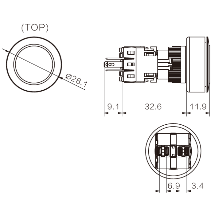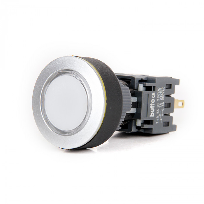 22M16-371-WD 16-22mm Yuvarlak Gövde Beyaz Işıklı Kalıcı Buton 24V