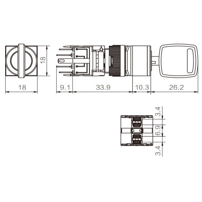 16mm Delik Çapına Uyumlu Kare 1-0-2 Yaylı/Kalıcı Anahtarlı Buton
