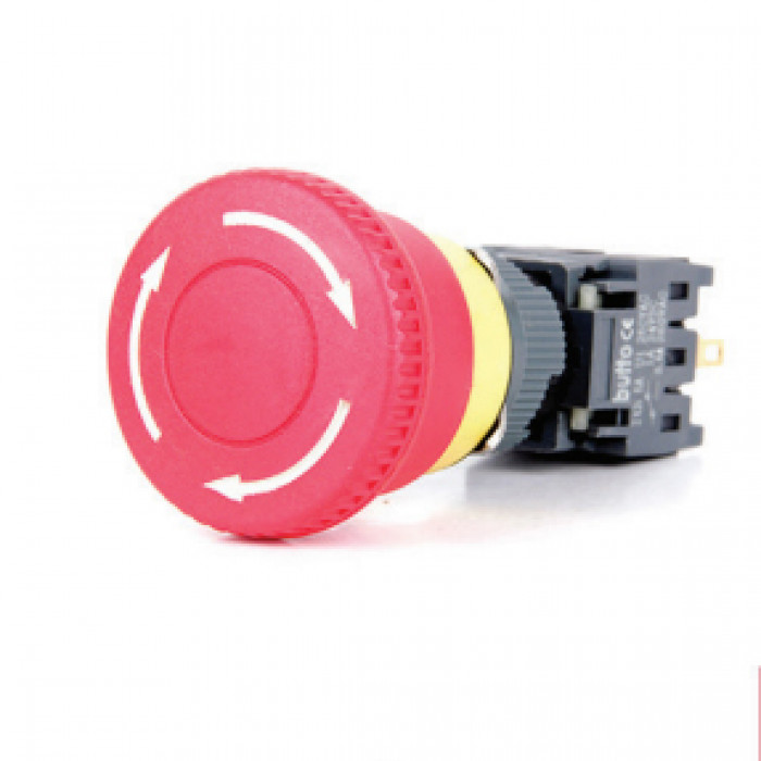 F16-A71-RD 16mm Yuvarlak Gövde Kırmızı Işıklı Etiketli Acil Stop
