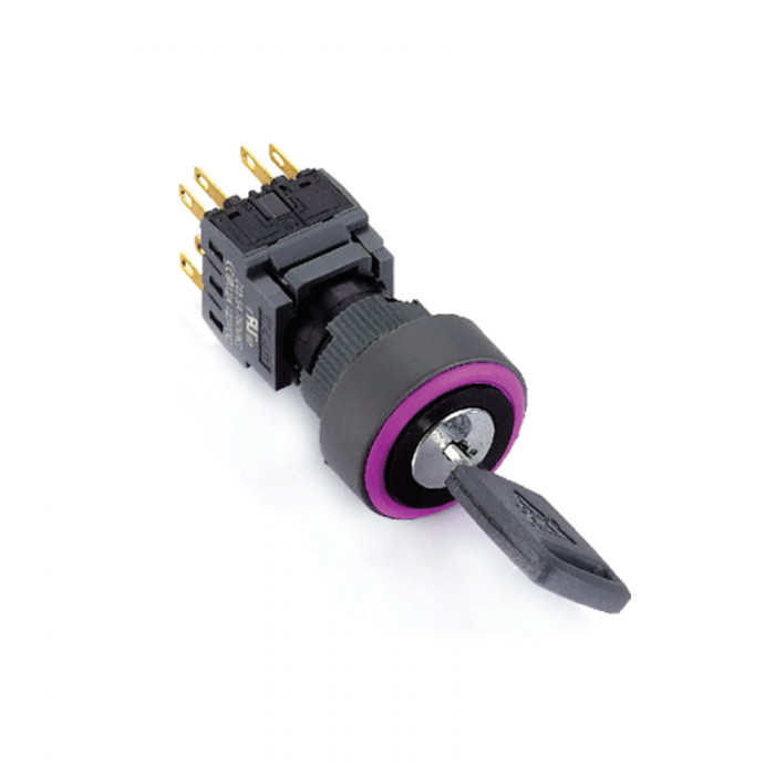 Plastik Yuvarlak Kalıcı Anahtarlı Buton IP65 2NO+2NC Kontak 1-0-2