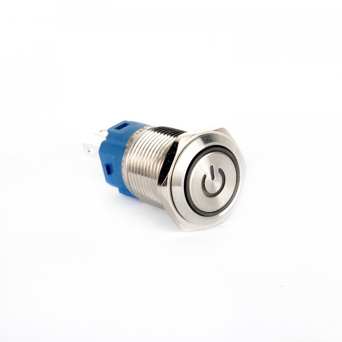 EGT16-271-P-BD 16mm Düz Yaylı Mavi Power Işıklı Metal Buton