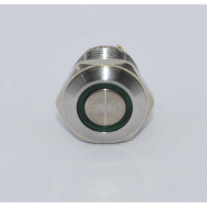 16mm Delik Çapına Uyumlu Düz Kafa Metal Yeşil LED Işıklı Yaylı Kısa Gövde Buton