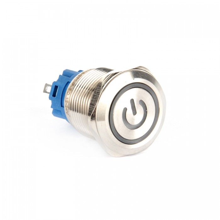 19mm Delik Çapına Uyumlu Düz Kafa Metal Mavi Power LED Işıklı Yaylı Buton