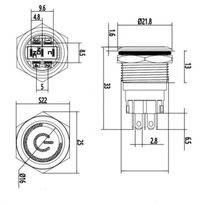 19mm Metal LED Yaylı Buton