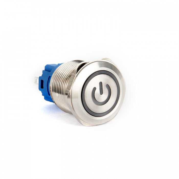 EGT19-371-P-RD 19mm Düz Kalıcı (Anahtarlı) Kırmızı Power Işıklı Metal Buton