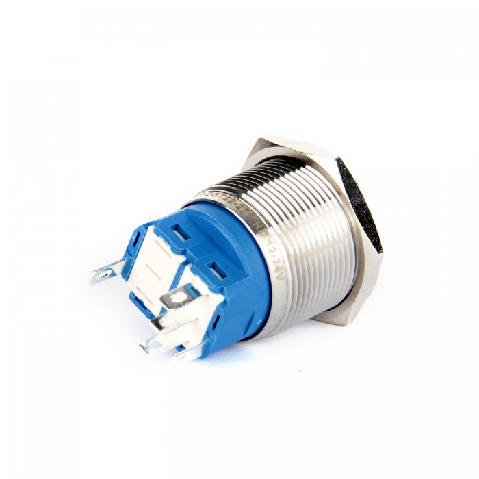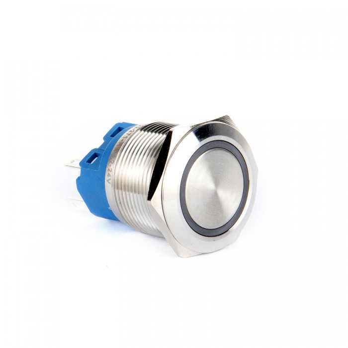 22mm Delik Çapına Uyumlu Düz Kafa Metal Mavi LED Işıklı Yaylı Buton