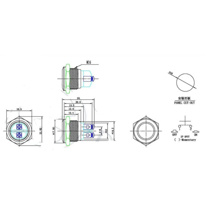 EGS16-211 16mm Düz Kafa Yaylı Metal Buton