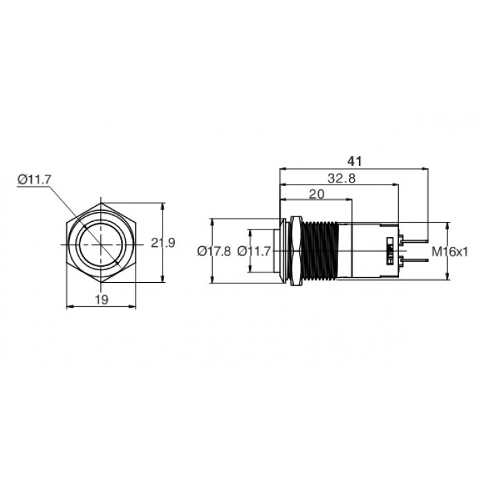 16mm Delik Çapına Uyumlu Çıkık Kafa Metal Sarı LED Işıklı Yaylı Buton