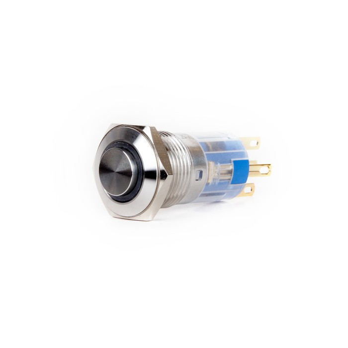 16mm Delik Çapına Uyumlu Çıkık Kafa Metal Yeşil LED Işıklı Kalıcı Buton