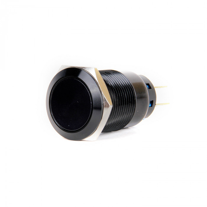 19mm Delik Çapına Uyumlu , Işıksız Düz Kafa Yaylı Siyah Gövde Metal Buton