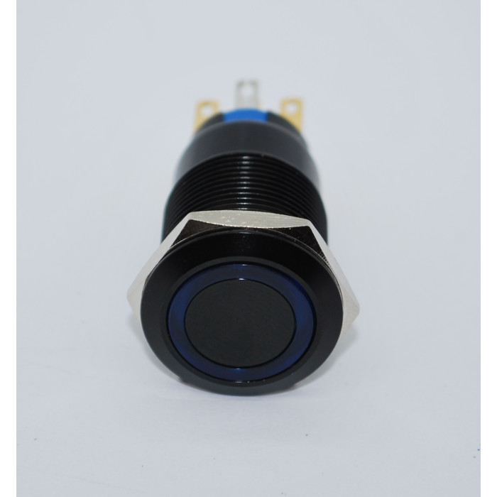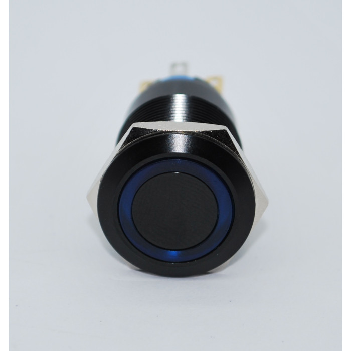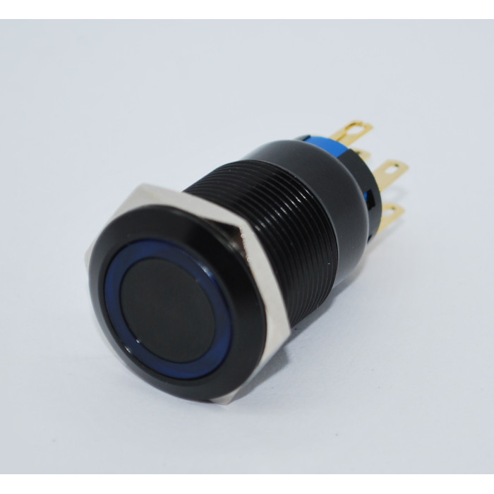 J19-272-AK-BD 19mm Metal Siyah Gövde Mavi LED Işıklı Yaylı Buton