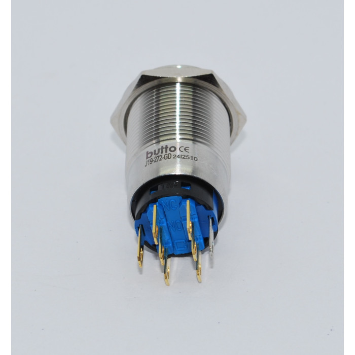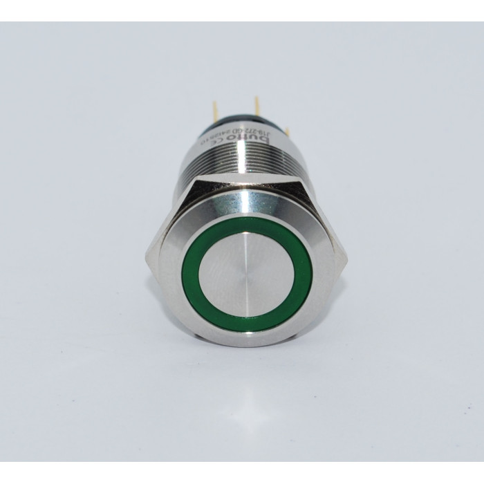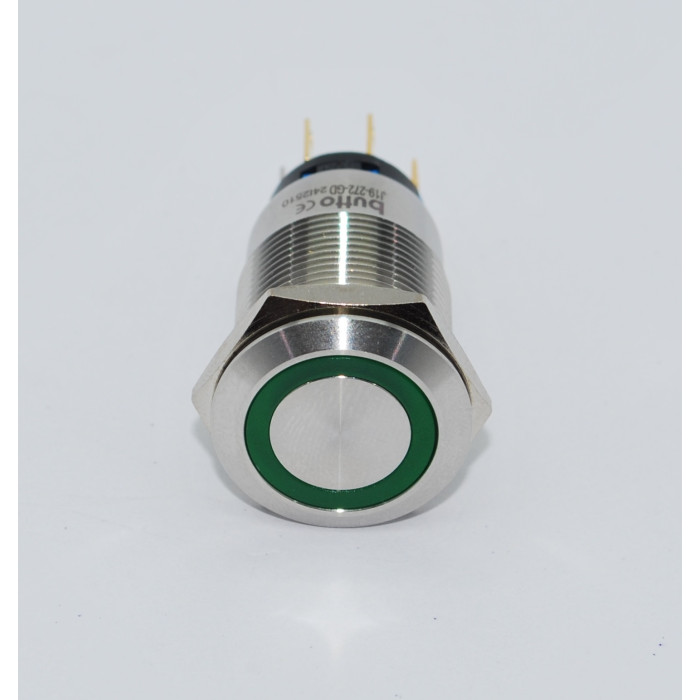 J19-272-GD 19mm Metal Yeşil LED Işıklı Yaylı Buton