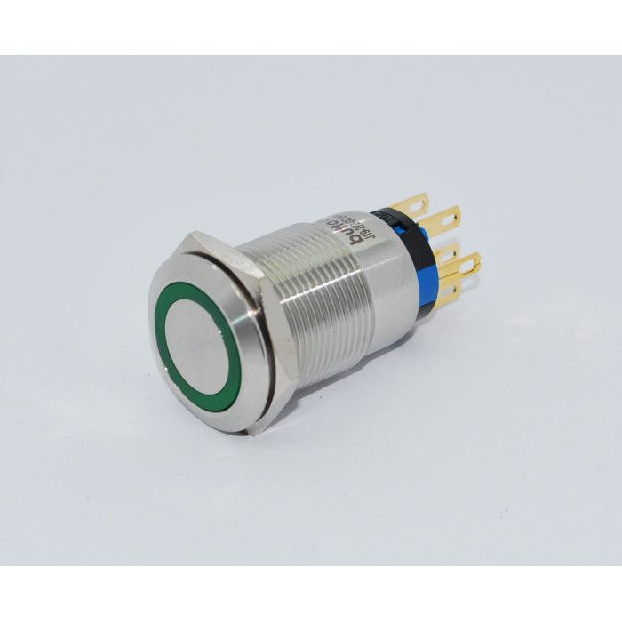19mm Delik Çapına Uyumlu Düz Kafa Metal Yeşil LED Işıklı Yaylı Buton