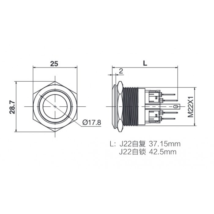 J22-271-AK-WD 22mm Metal Beyaz LED Işıklı Yaylı Buton