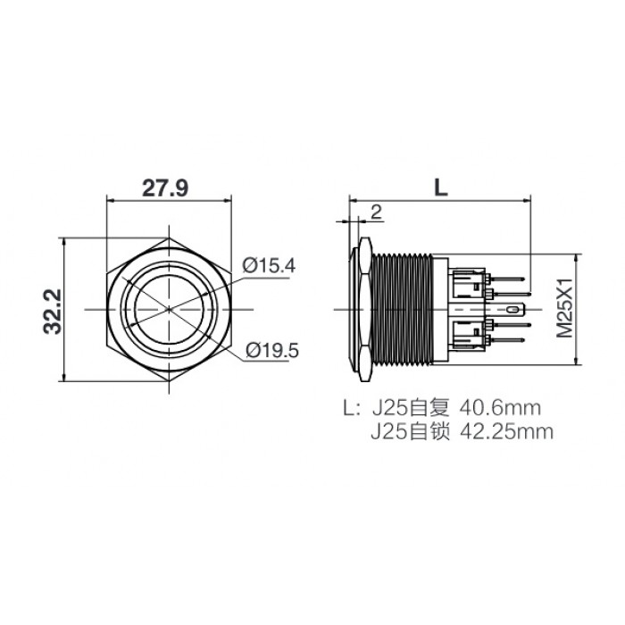 J25-372-P-WD 25mm Metal Beyaz LED Işıklı Kalıcı Buton