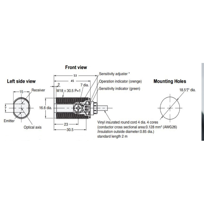 SL18P-D50PLC 50cm Cisimden Yansılamlı Fotosel , M18 PNP NO+NC