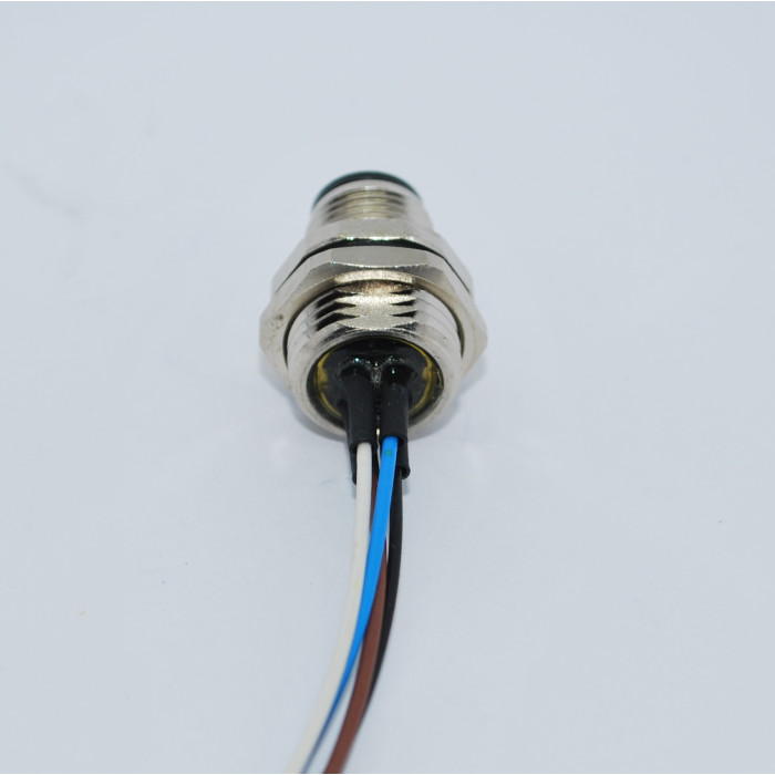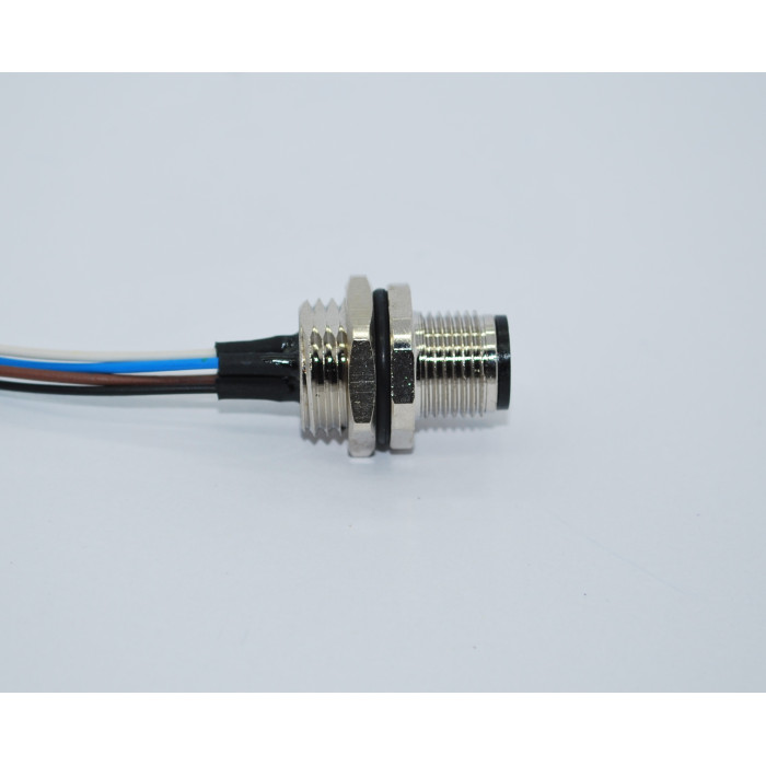 Metrik 12 ölçüde Ip67 sıvı koruma sınıfına sahip 4 Pin Önden Somunlu Panel Tipi Erkek konnektördür.