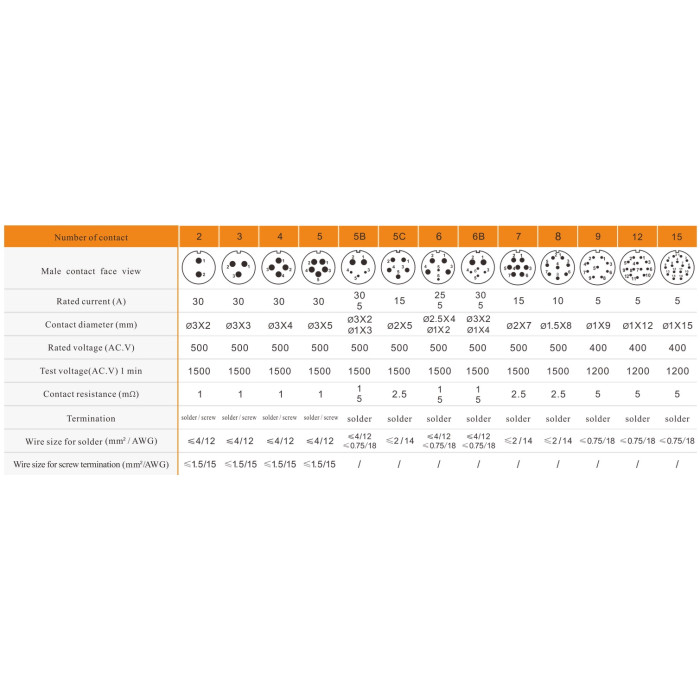 Gövde Yapısı | Ø21 , 8pin Erkek , 15A |